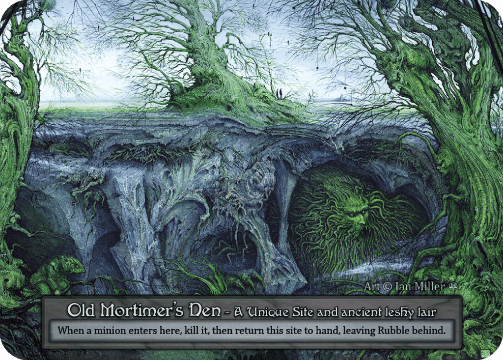 Old Mortimer’s Den might be my favourite site in Gothic. I have been a fan of Mariner’s Curse since Alpha, and using forced movement effects to kill your opponent’s minions is so much fun. I think Mortimer will warp games, where your opponent is incentivized to play more sites than they’d like to prevent you from replaying the Den freely turn after turn.